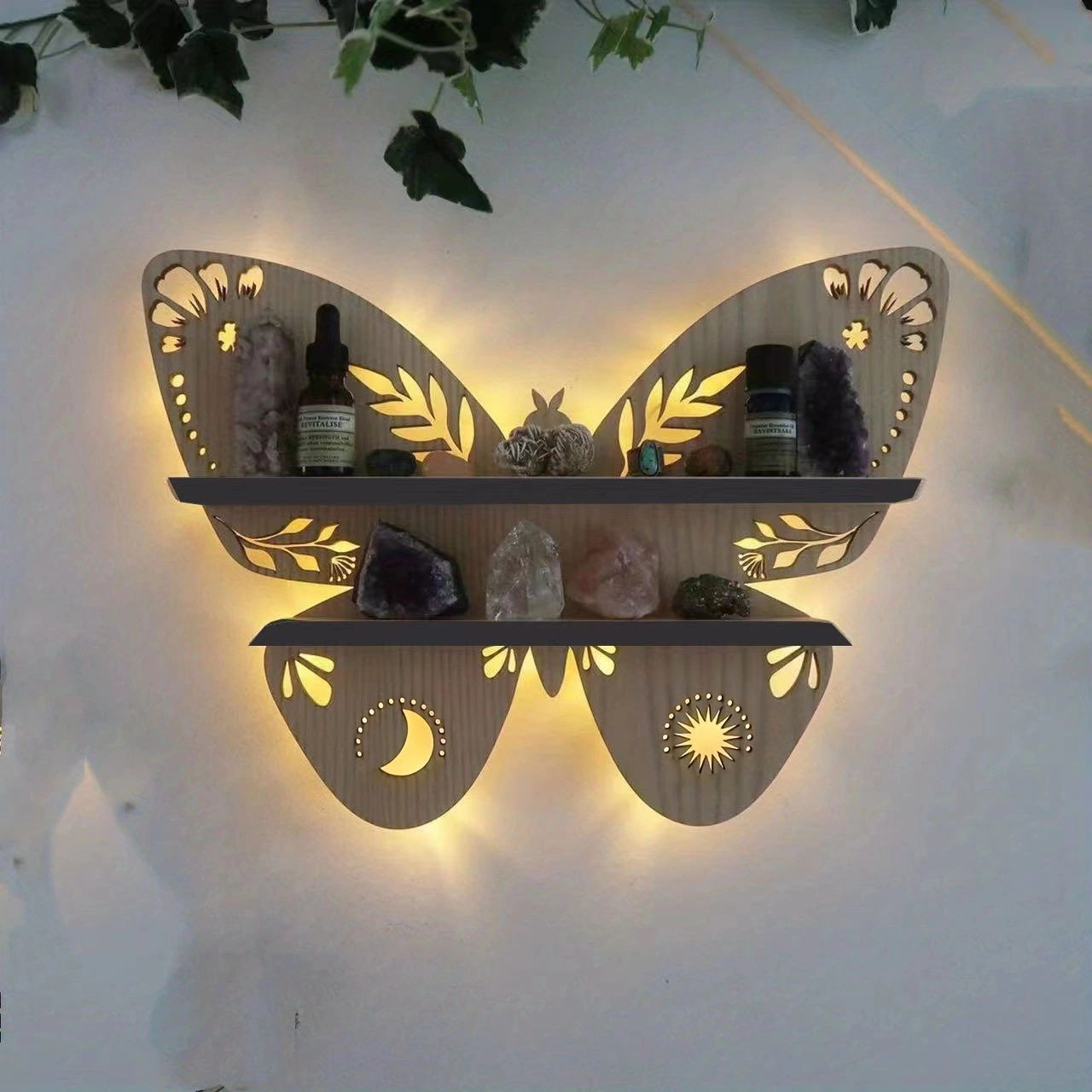 These lighted wall shelves are a perfect addition to any room in your home. They are perfect for any small knickknacks or photos leave them up year around.